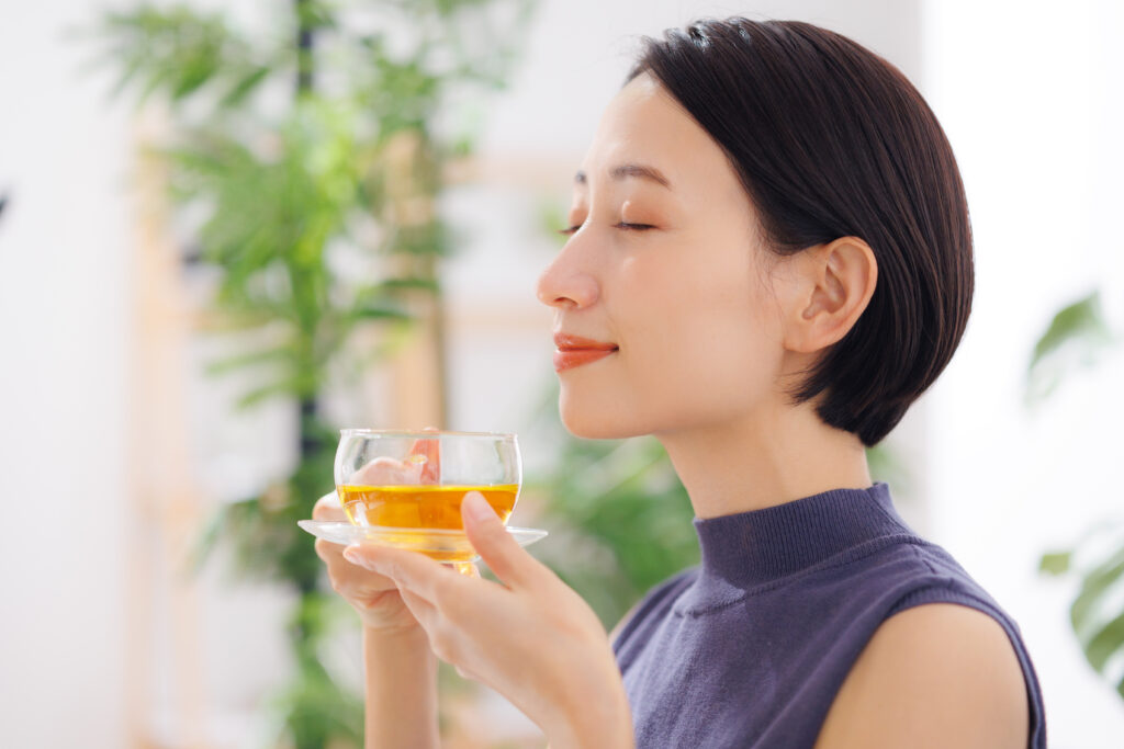 寝る前1時間はスマホを手放し、あたたかい白湯をゆっくり飲みながら、呼吸を整える時間を。