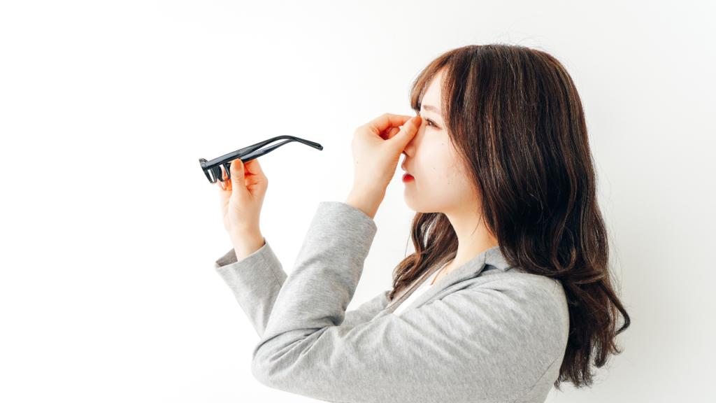 この女性は毎年秋になると、起床時の大量の目ヤニと強い目の痒みに悩まされていました。