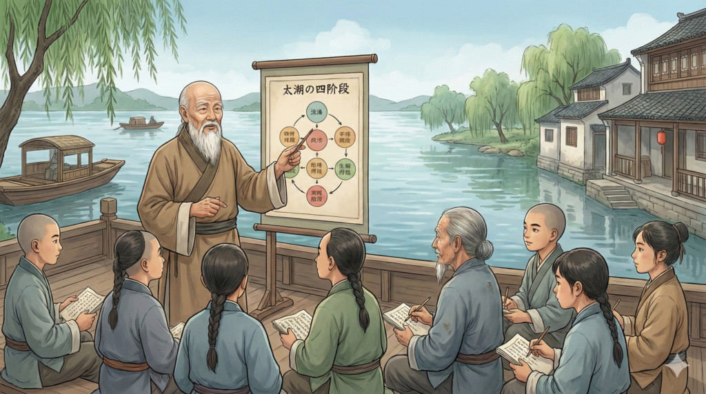 晩年、葉天士は太湖で多くの弟子へ講義を行い、その内容は弟子たちにより 『温熱論』 としてまとめられました。
