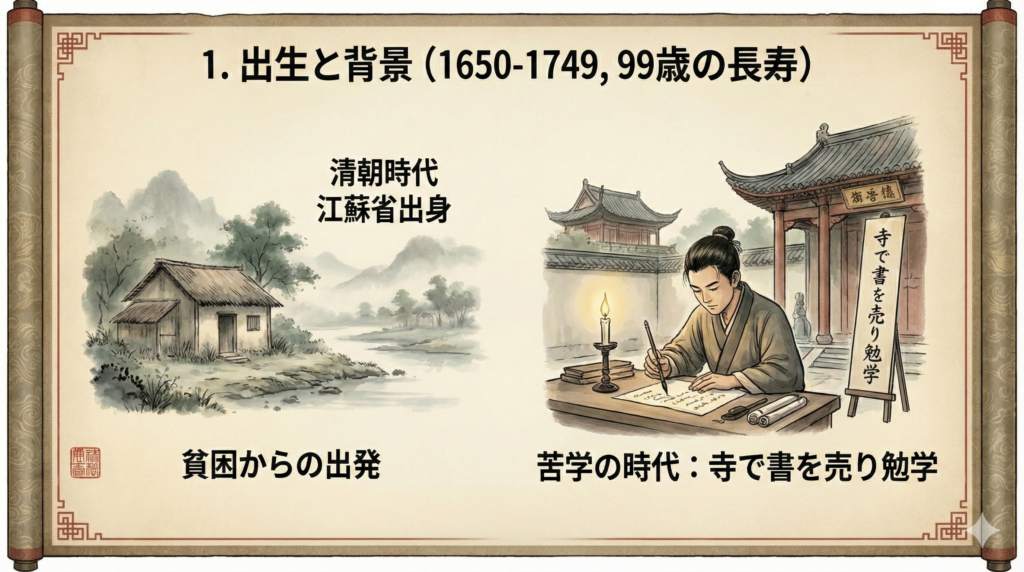 尤怡は1650年、江蘇省にある非常に貧しい家庭に生まれました。