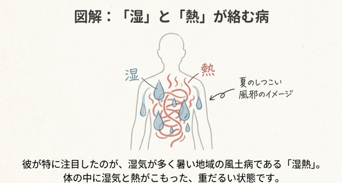 「湿」と「熱」が複雑に絡む病気を詳細に分析しています。