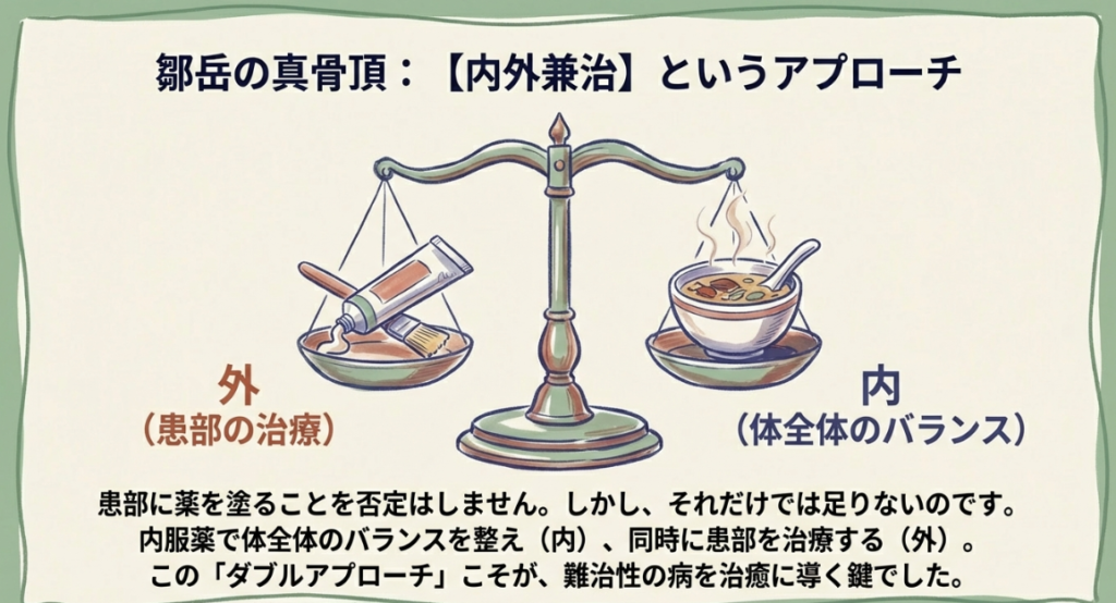 **「内外兼治(ないがいけんち)」**という治療法でした。