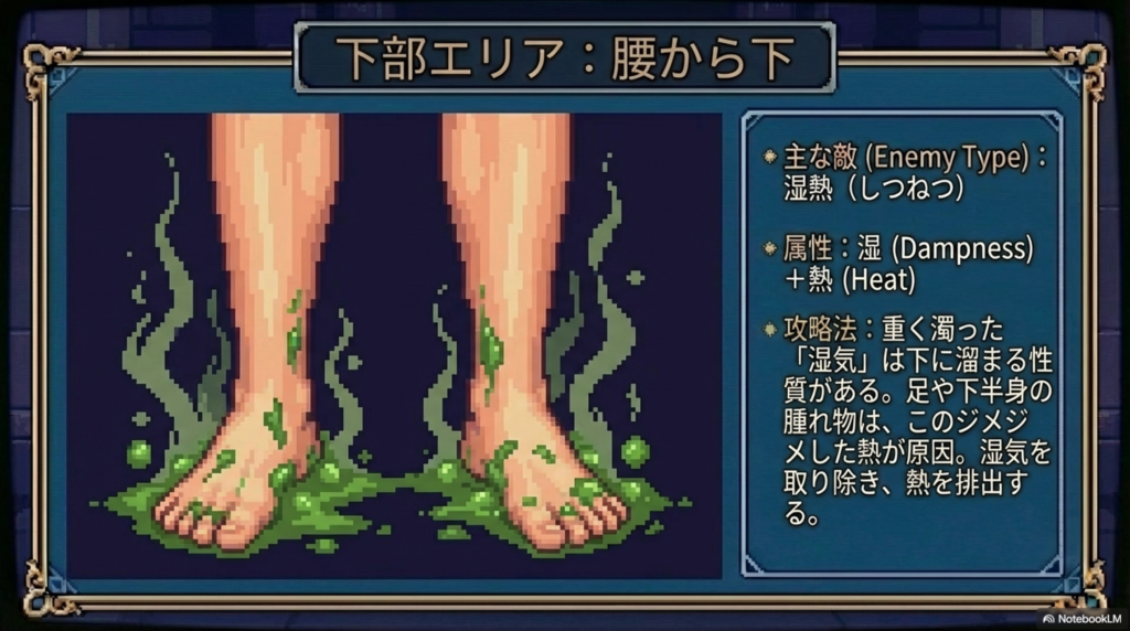→ 気の滞りが関与しやすい - 腰から下の病変