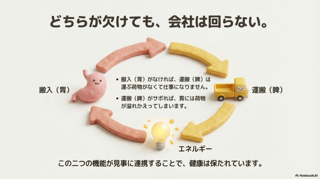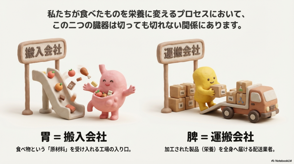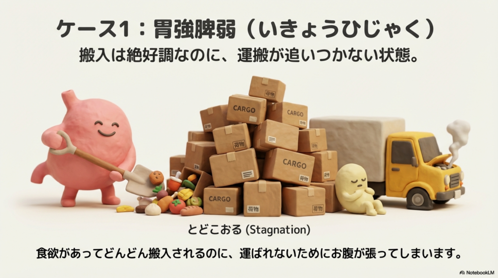 • 脾が止まれば、胃に荷物が溜まり続ける
