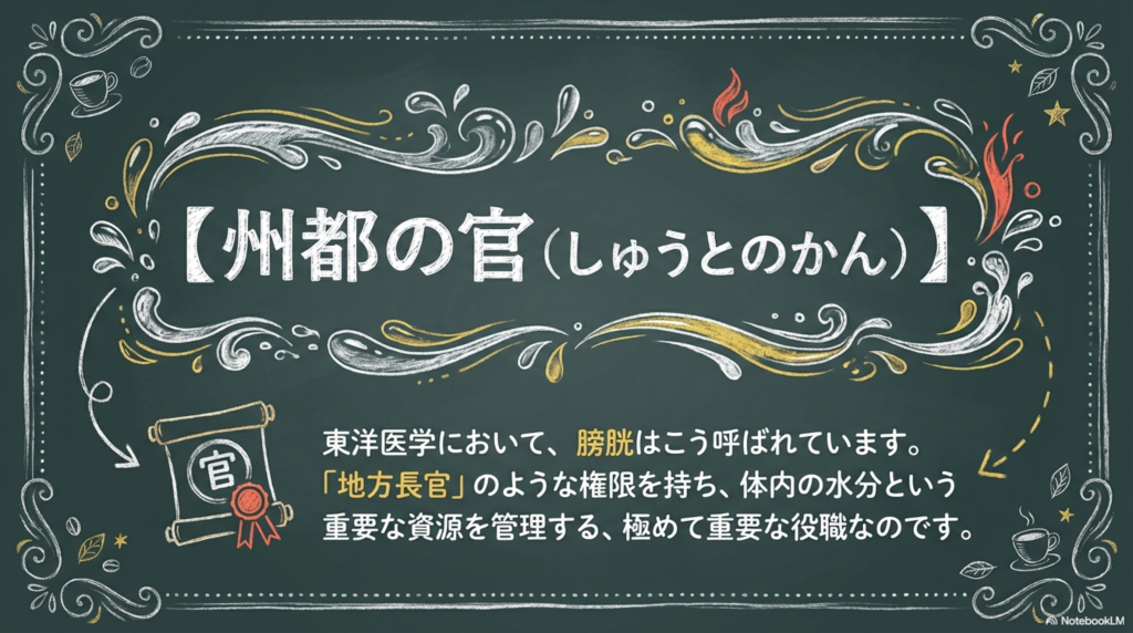 「州都の官」という異名を持つ、非常に重要な臓腑として位置づけられています。