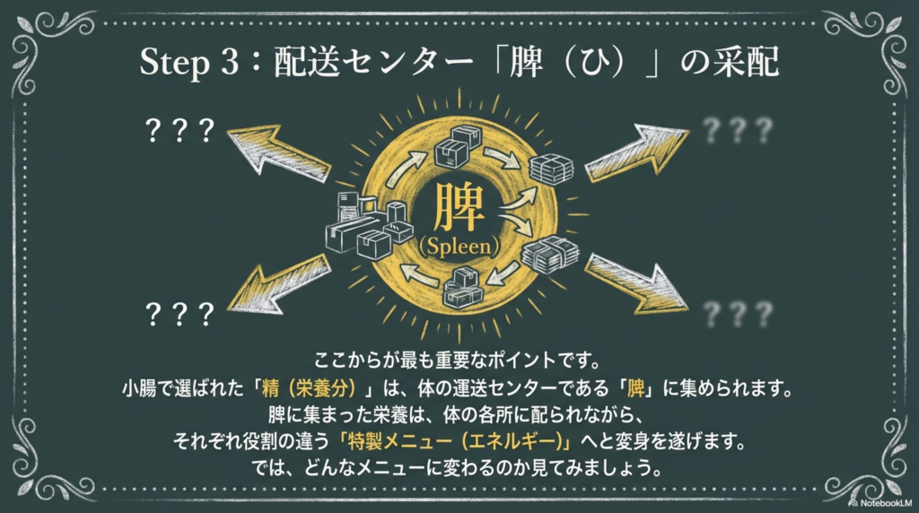 体の運送センターである「脾(ひ)」へと集められるのです。