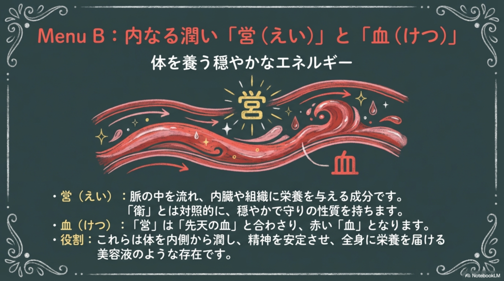 内を潤す「営(えい)」と「血(けつ)」