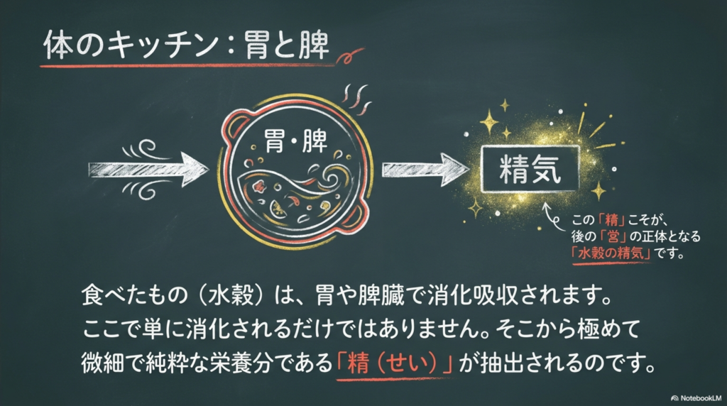そこから極めて微細な栄養分である「精(せい)」が生み出されます。