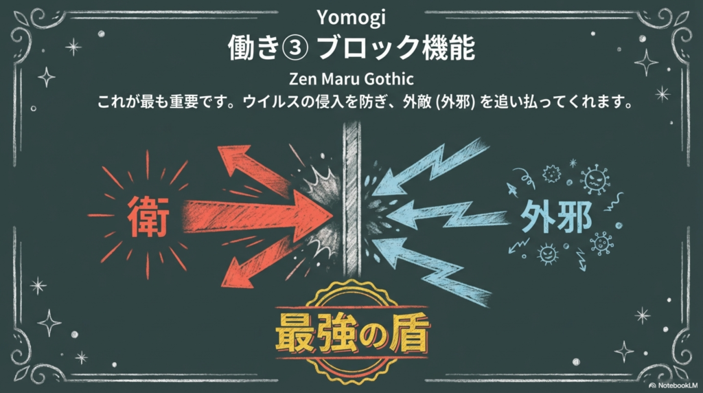 衛は、ウイルスや寒気といった外邪の侵入を防ぎます。