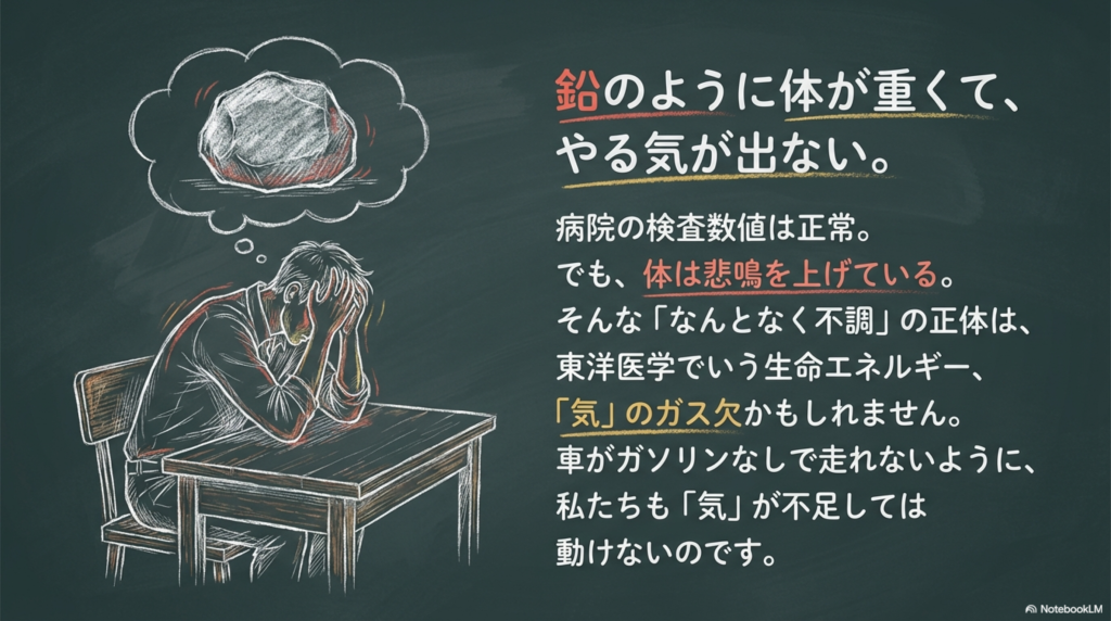 その正体は、東洋医学でいう生命エネルギー「気(き)」の不足かもしれません。
