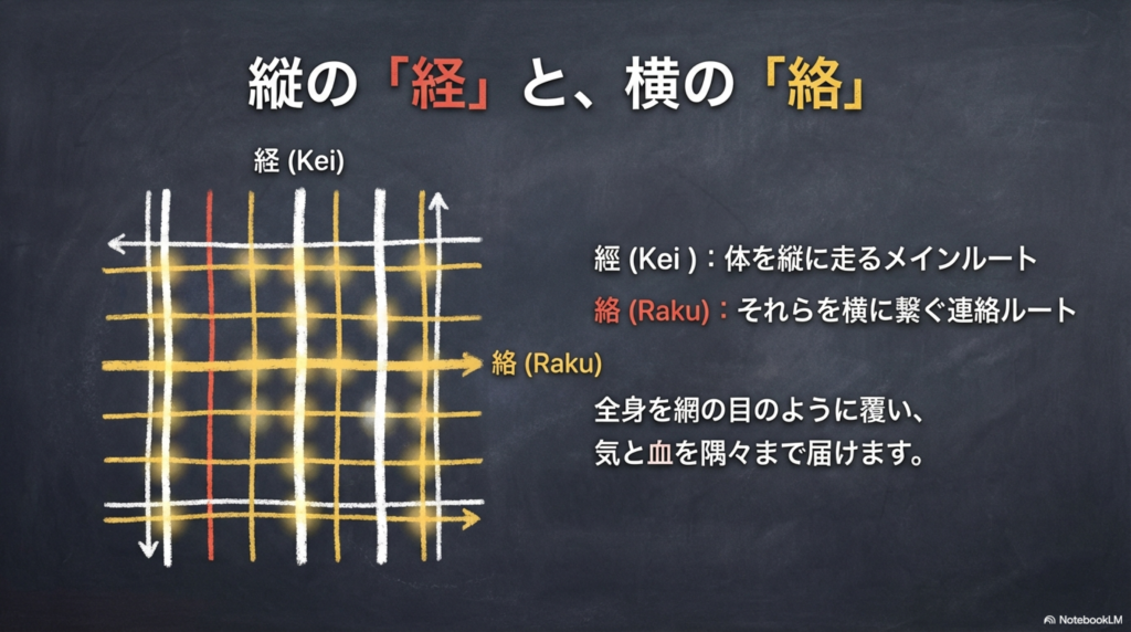 体を縦に走るメインルート「経脈」と、