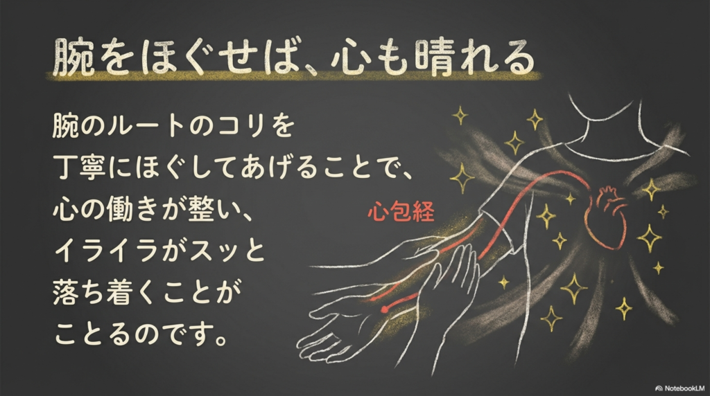 この腕の内側の緊張を丁寧にほぐすことで、