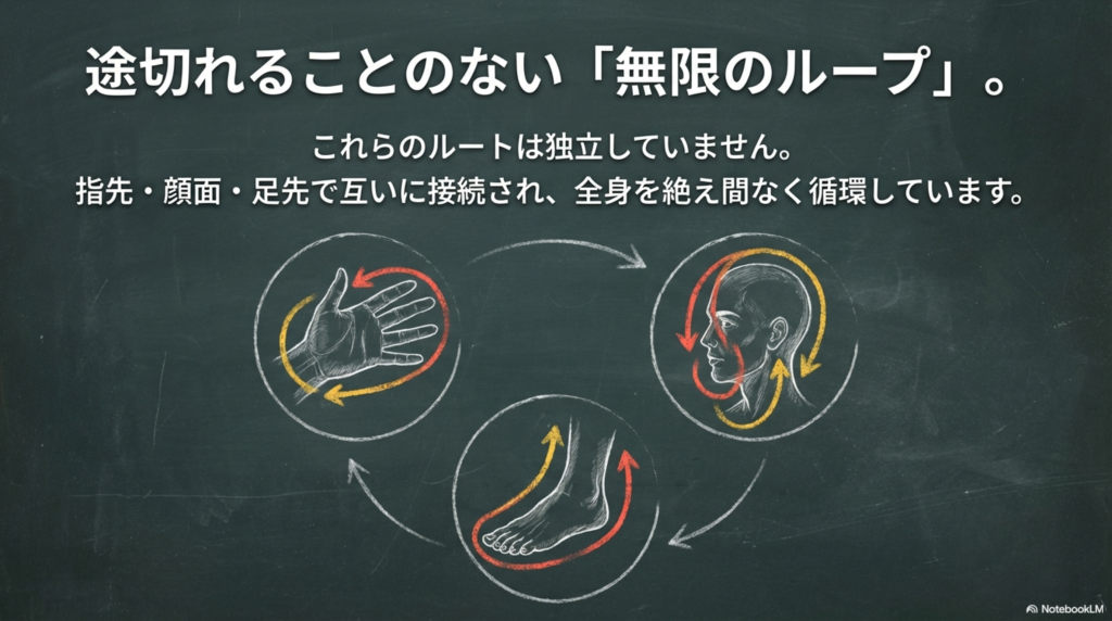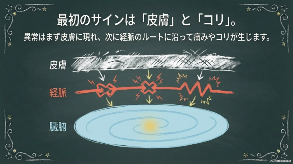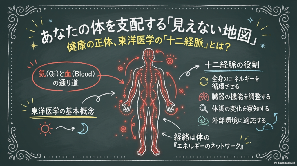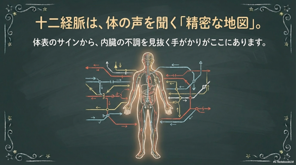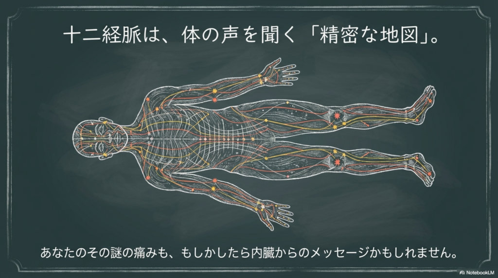十二経脈は、体の表面と内臓を結ぶ精密な地図です。