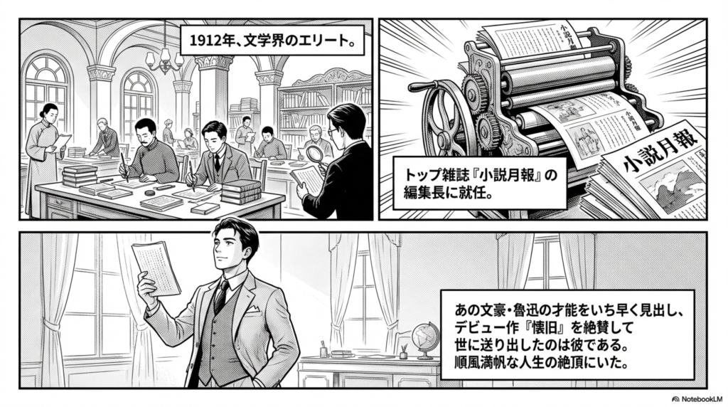 惲鉄樵は、著名な雑誌『小説月報』の編集長を務めた文学界のエリートでした。
