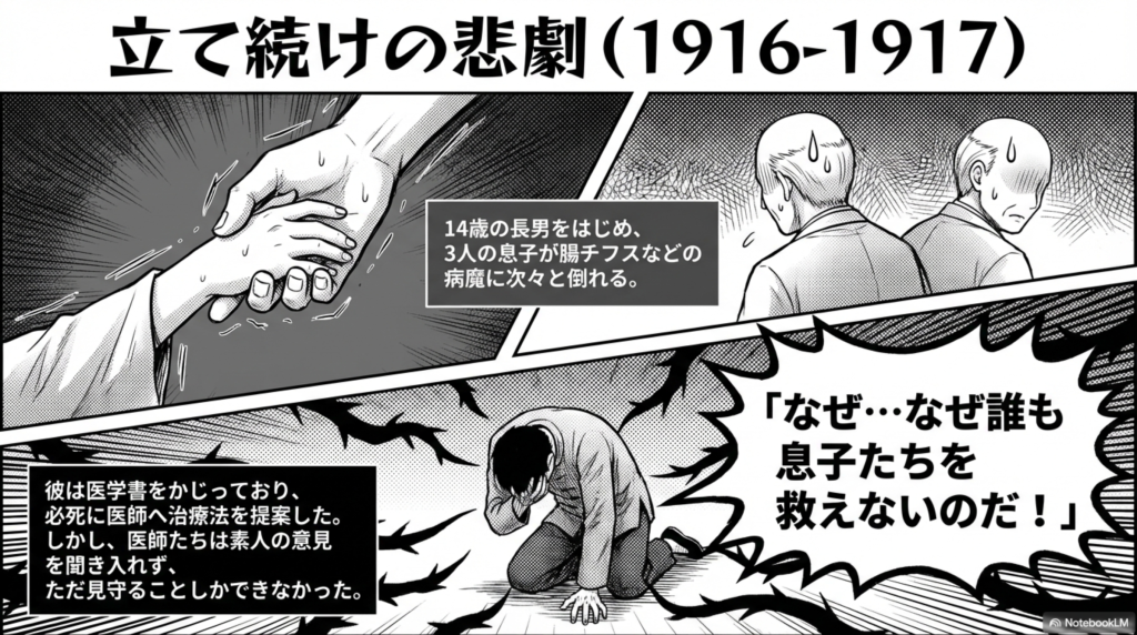 3人の息子を腸チフスなどの病で立て続けに失ったのです。