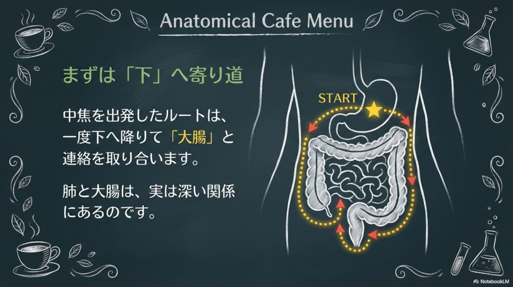 そこから一度下へ降り、大腸と連絡を取り合います。