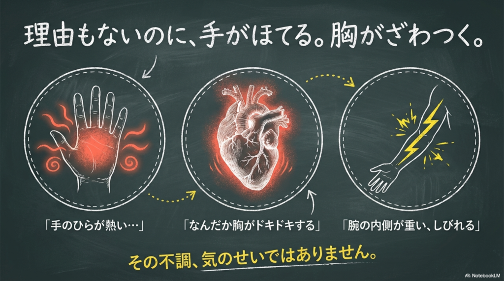「手厥陰心包経(てけついんしんぽうけい)」が関係している可能性があります。