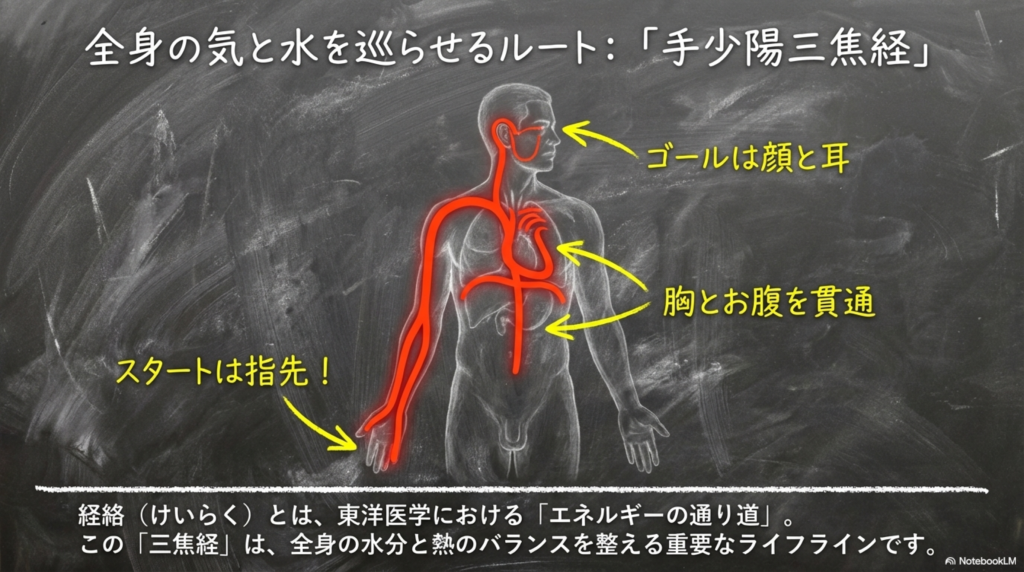 これは、三焦経が耳や喉の近くを直接通っているためです。