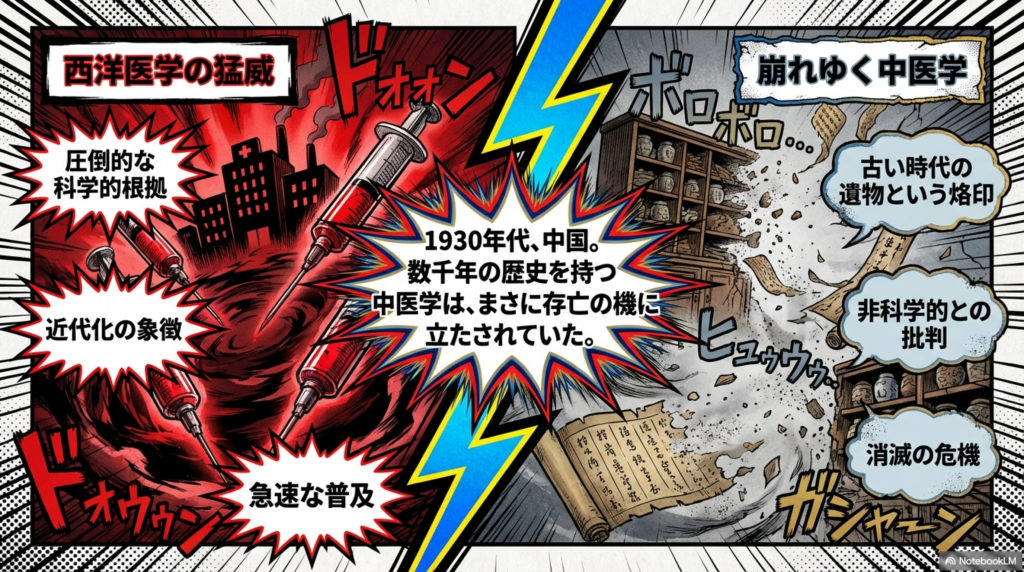 20世紀前半の中国、とくに1930年代は、西洋医学の流入によって中医学が大きな転換点を迎えていた時代でした。