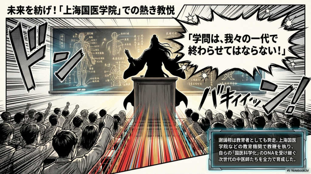 彼は上海国医学院などの教育機関で教鞭を執り、次世代の中医師の育成に尽力しました。