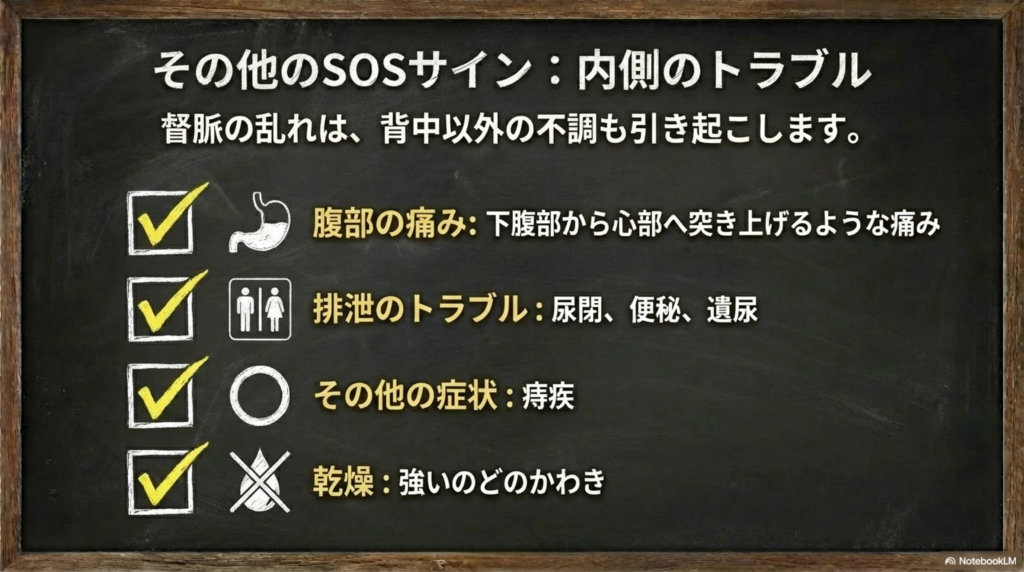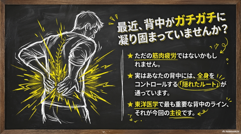背中のこわばりや姿勢の崩れ、排尿・排便の不調などが気になる方にとっても、督脈の視点は非常に参考になります。