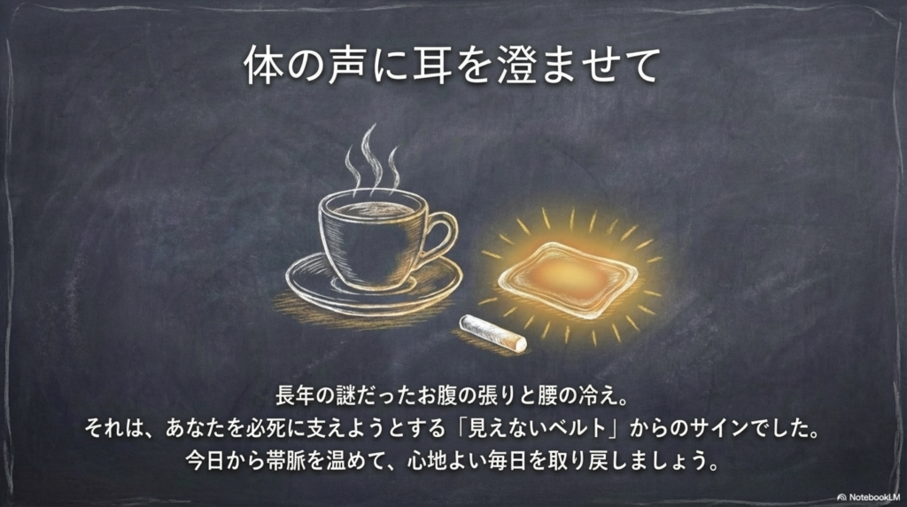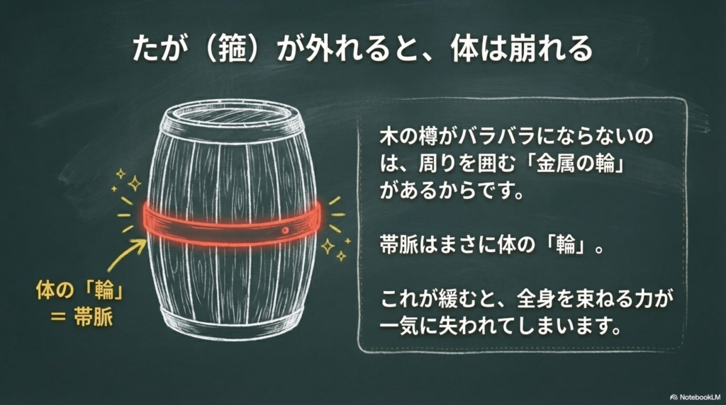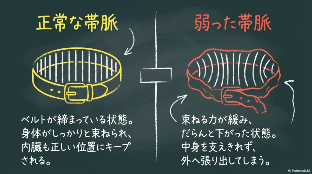 それは、体を束ねる“ベルト”のような働きが弱まっているサインかもしれません。