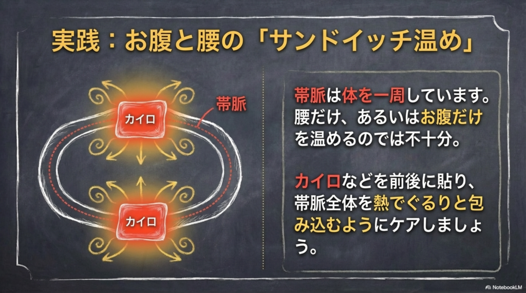 を意識的に温めることが、帯脈の働きを助けます。