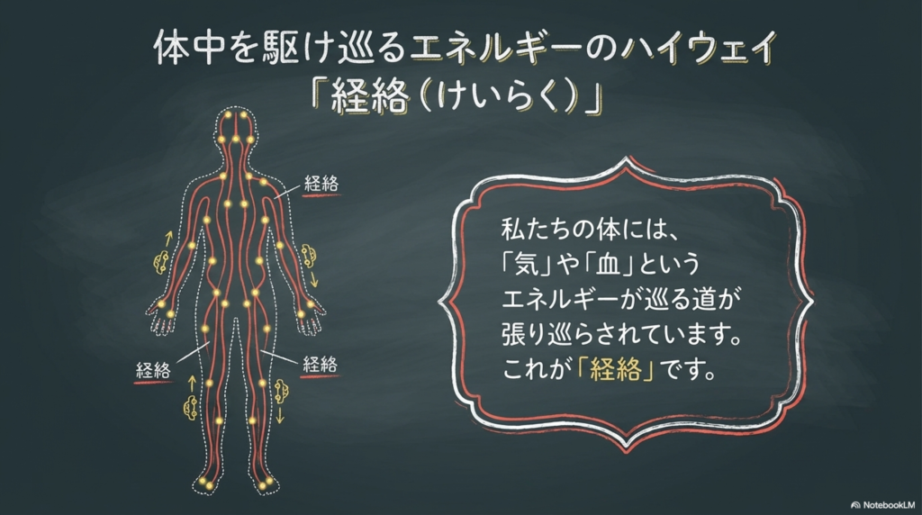 東洋医学では、体の中に経絡(けいらく)という