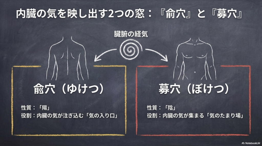 その鍵となるのが、兪穴(ゆけつ)と募穴(ぼけつ)です。