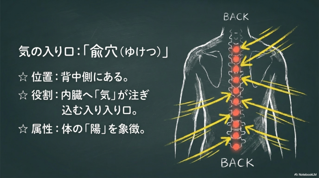 - 兪穴 → 背中にある「気の入り口」