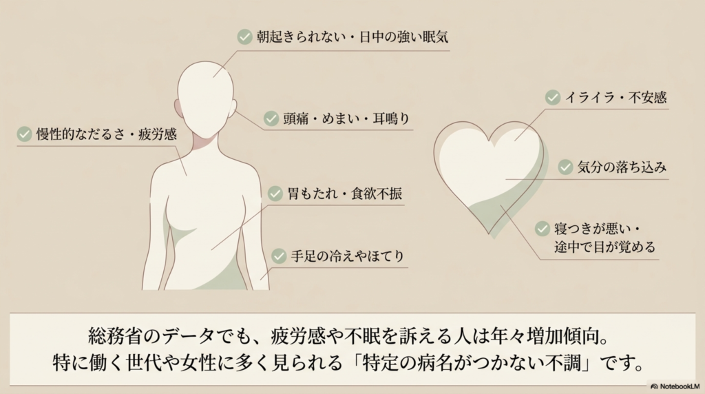 「なんとなく不調」として見過ごされがちです。