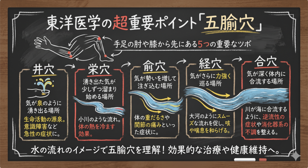 五腧穴は、手足にある5つの重要なツボで、