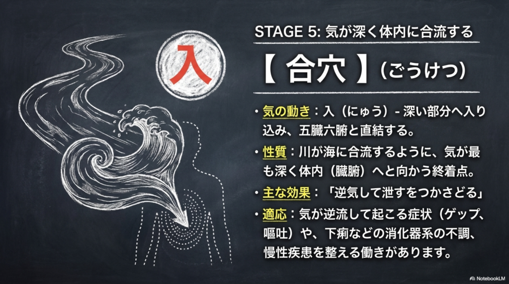 ⑤ 合穴(ごうけつ)――気が深く合流する場所