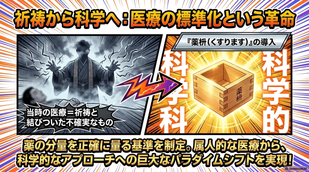 • 薬の分量を正確に量るための薬枡(くすります)の導入