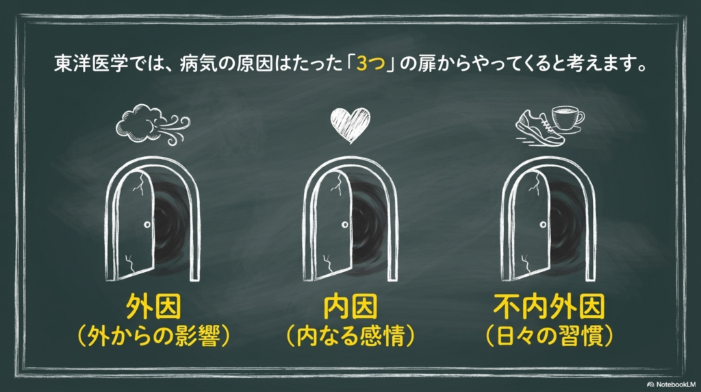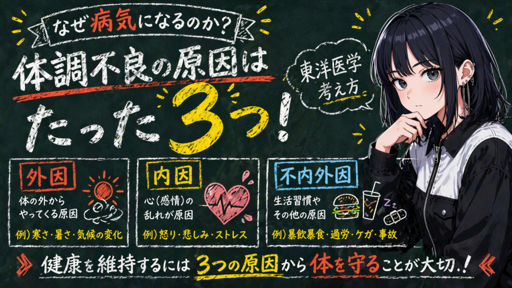 私たちの体調不良には、実は大きく分けて3つの原因があると東洋医学では考えます。